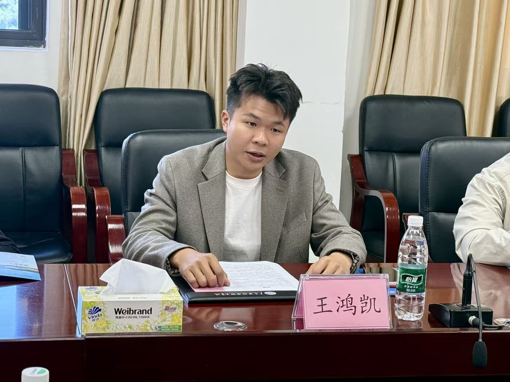 座谈会上,蒋伯杰副校长向企业代表介绍了我校的办学特色与育人成果。他表示,学校始终坚持以生为本、对接地方产业,持续深化校企合作,致力于培养高素质技术技能人才。2025届毕业生就业率达98.42%,平均起薪增幅超5%,留清率达8.3%,就业质量持续位居全省高职院校前列。